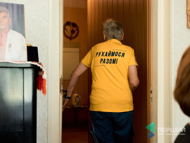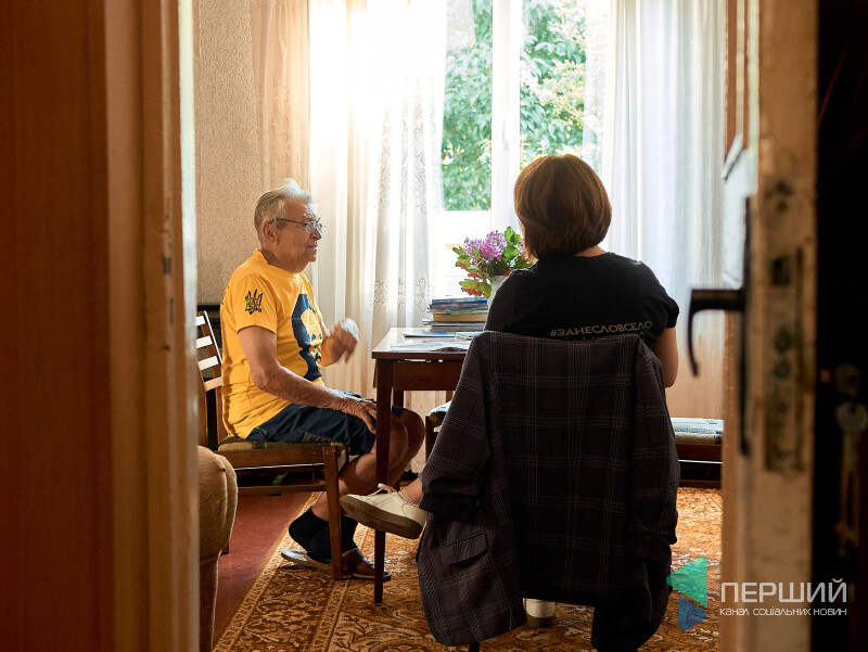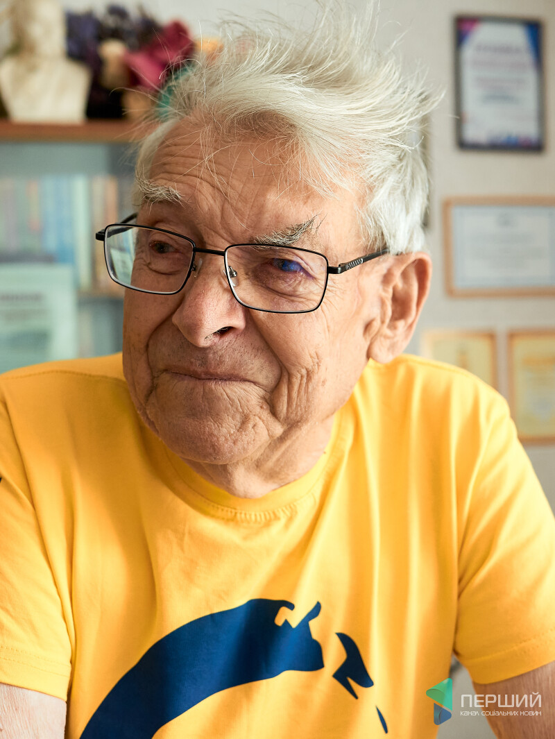 Час від часу сивий чоловік у шортах та жовтій футболці з портретом Чорновола сідає щось грати. На руці у нього герб і слова: «Молодий Народний Рух». Він або йде до іншого боку стола й шукає у паперах якісь свої вірші, або розкладає ордени і альбоми, або закриває очі й зосереджено згадує.