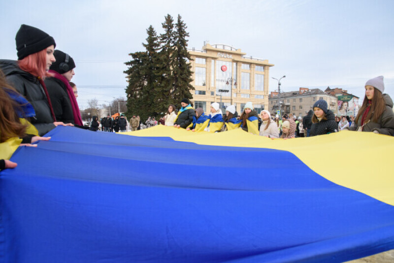 Із нагоди Дня Соборності України у Луцьку відбулася патріотична акція «Ланцюг єднання». У центрі міста, на Театральному майдані, зібралися близько тисячі жителів громади, щоб розгорнути 200-метровий національний прапор і пройти з ним вулицею Лесі Українки до площі Злуки.
