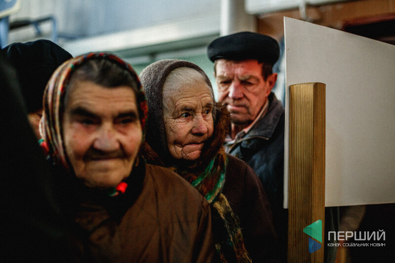 У глибині приміщення – великий натовп. У ньому ти не бачиш очей. Бачиш тільки старі кашкети, шапки-вушанки зі штучного хутра, теплі хустки. Люди у цьому натовпі ховають очі. Вони не хочуть розказувати про себе журналістам, уникають камери. Але приходять сюди рівно о 9-й щосуботи. Уже кілька років поспіль)