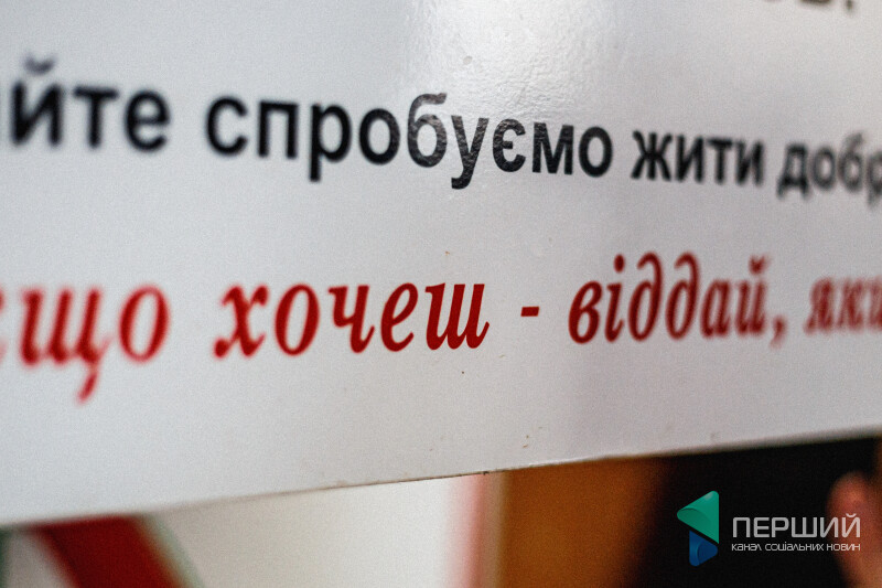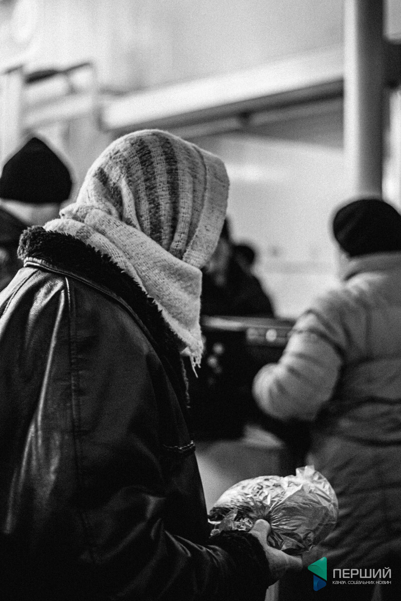 Раптом хтось її перебиває. Якась жінка вітається, дає 100 гривень і йде собі далі. «Це на хліб. Ця жінка завжди дає нам гроші. Вона з місцевих, з ринку, звичайна собі жіночка, не з багатих. Але от небайдужа: бачите, просто прийшла і дала...» – пояснює Наталя.
