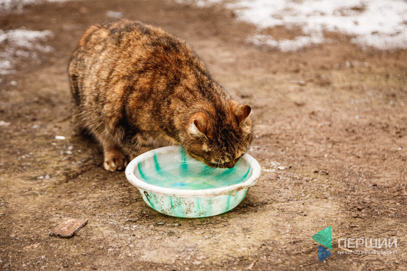 «Якби ви бачили, як вони біжать мене зустрічати! Ніякий негатив після такого до мене не пристає. Поїдять, потім отут всі мостяться. Мухтара щеням викинули – вигляділа. Оця руда прийшла до мене років 6 тому і привела свою «доцю». Вони були такі, що я думала, що їх просто не відгодую, падали з голоду. …Я їх навчила: поїли – в коробочки, щоб нікому не заважали. Понастиляла «мєха», періодично замінюю», – розповідає жінка.