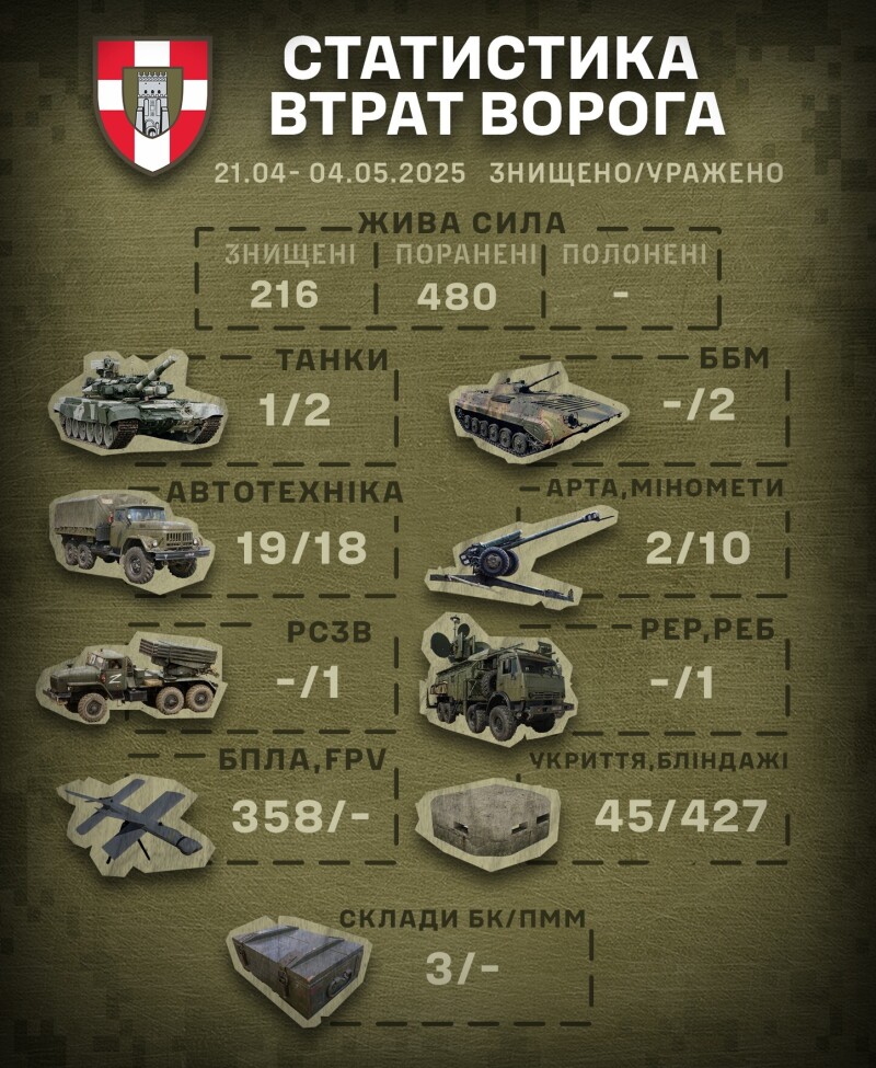 Підрозділи «Сталевої Сотки» продовжують невпинно знищувати окупантів на Торецькому напрямку. У період з 21 квітня по 4 травня 2025 року бійці 100-ї окремої механізованої бригади нанесли ворогу відчутних втрат.