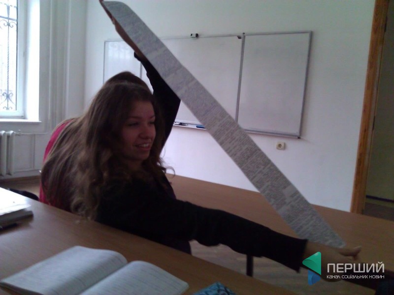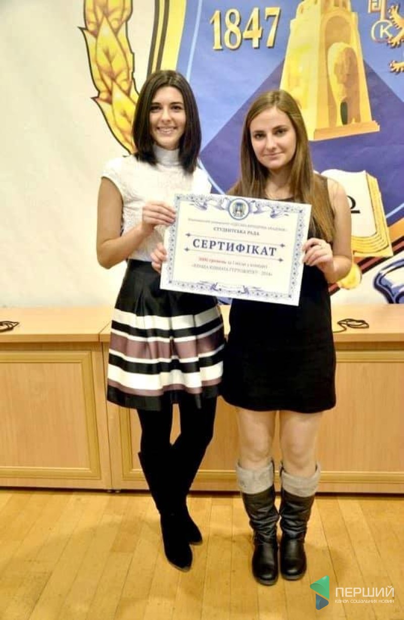 На друге фото – це посвята у студенти першокурсників. Я тоді саме була на 4 курсі. На фото ми з одногрупницею, ми тоді уже працювали. А світлину на пам’ять нам таку презентував наш викладач із підписом: «От, що хочете мені кажіть, але таки був толк з пар!!!!» Пригадую, так приємно було)))