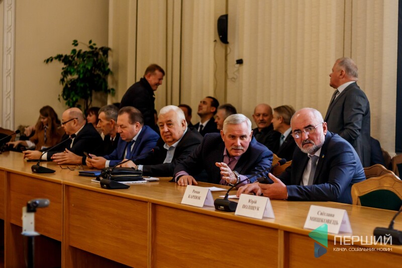 Резюмує голова облради Ірина Вахович. Ні словом не згадує уже про прийняте рішення на позачерговій сесії. Має до гостей чітко виписані пропозиції і бачення розвитку області. Згадує і про «сухий порт» під Ковелем із зарезервованою ділянкою, який брався робити голова ОДА Савченко, і про передачу лісів у комунальну власність, і про військовий госпіталь у Луцьку, який треба перенести, бо споруду, яка недавно горіла, хочуть перетворити у культурний осередок міста.