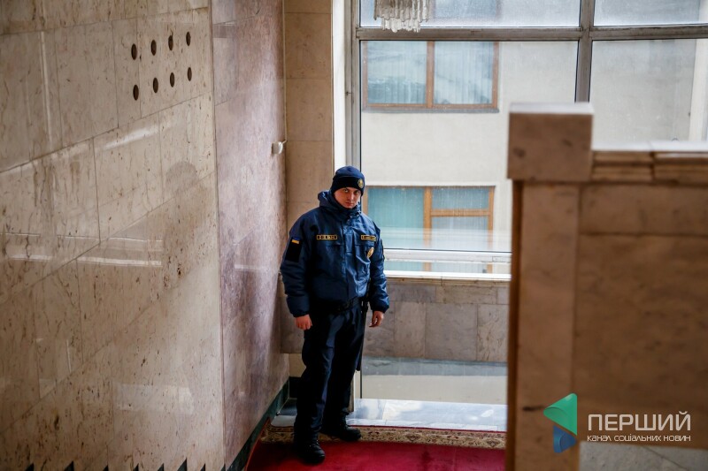 Відтак на вході нема рамок. Багато поліції, мало приватної охорони, що відразу вказує на відсутність Ігоря Палиці. Спокійно. Народ помалу підтягується до овальної зали. На ходу мало не кожен дивується: чому – саме там? Традиційно голів ОДА представляють у сесійній, яка більш простора.