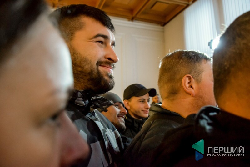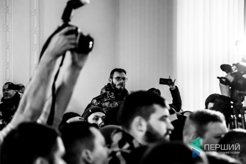 У малій залі нетерпляче чекають атовці, юнаки у формі «Нацдружин», громадські активісти. Серед відомих тут айдарівець Олександр Калюжний з Ковеля, керівник осередку «Нацкорпусу «Азов» на Волині Андрій Д’яченко, атовці Вадим Ваврищук,  Андрій Луцик та інші.
