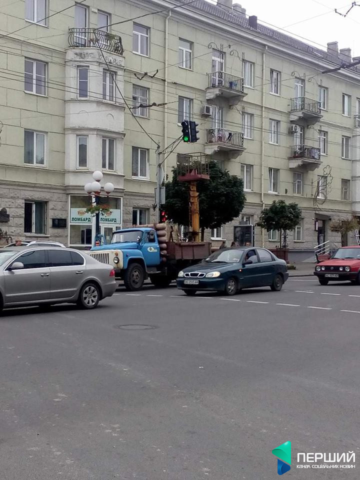 Під час руху тролейбус № 8 струмоприймачем зачепив світлофор, внаслідок чого той поламався.
