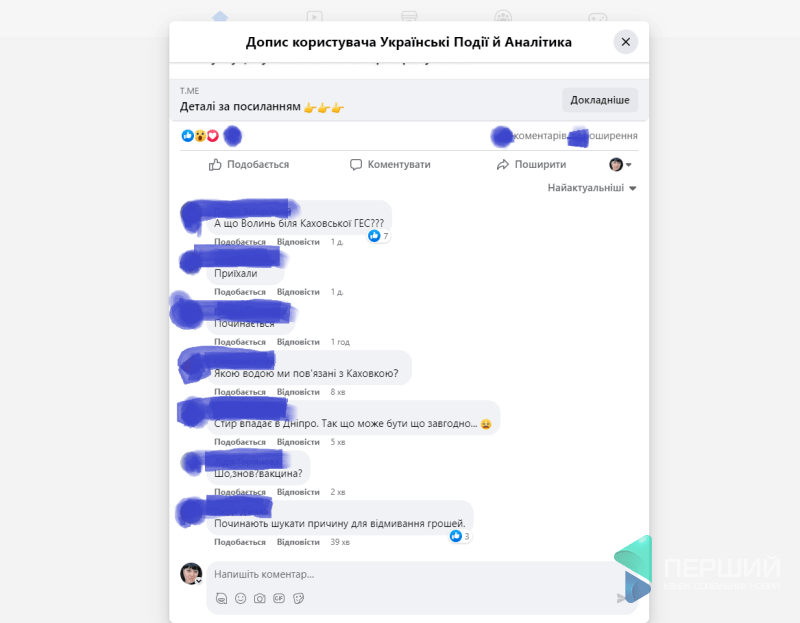 А повертаючись до «вкиду» на рекламі зі сторінки «Українські Події й Аналітика», то власне під цим постом у ФБ я побачила багато реакцій, коментарів, поширень допису від реальних людей, причому основна частина з них – волиняни із різних населених пунктів області, з відкритими сторінками, світлинами та особистою інформацією. Коментар-сумнів щодо правдивості інформації висловами лише одна людина. Я заблюрила прізвища та аватарки на скріні лише з поваги до цих людей, які потрапили на гачок пропаганди.