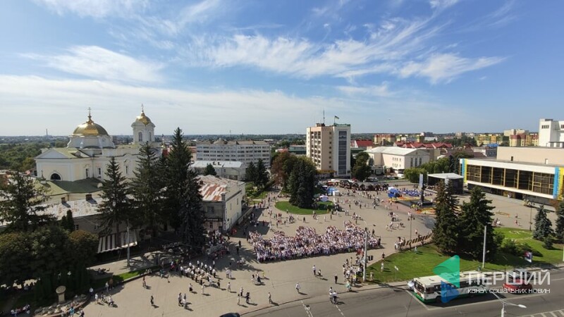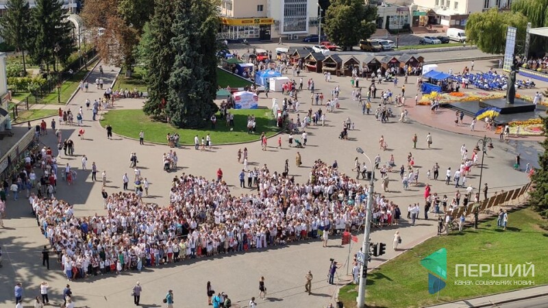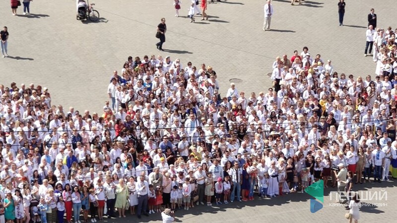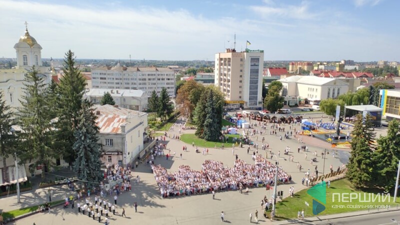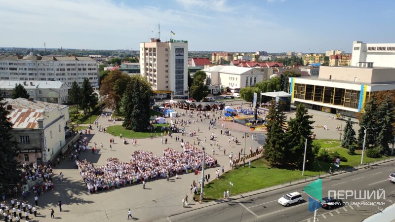 Кілька сотень лучан, вбраних у вишиванки, вишикувались на Театральному майдані, утворивши корону Вітовта, яка символізує 590-ту річницю з'їзду монархів.