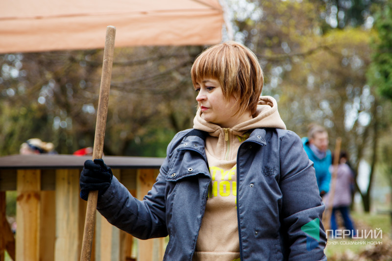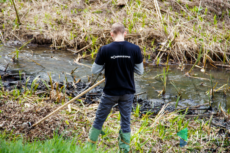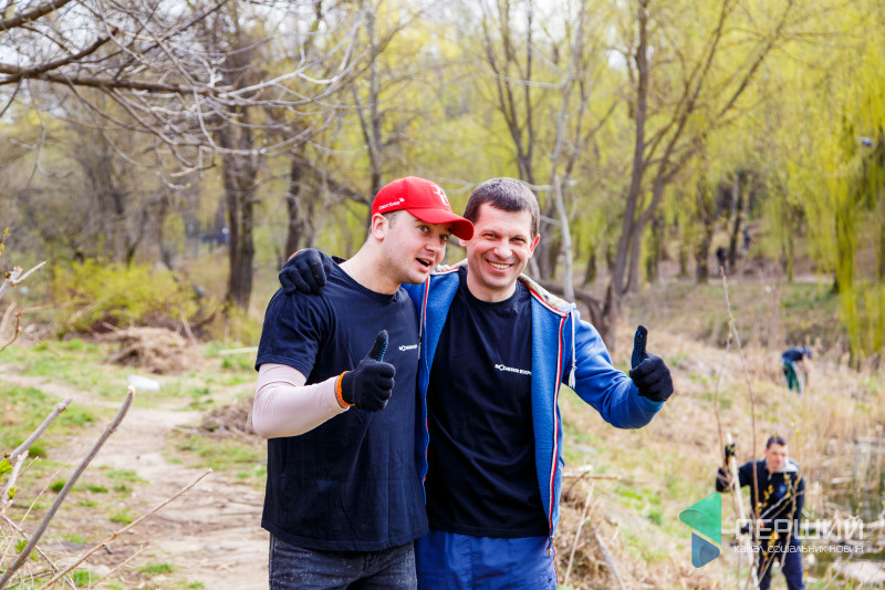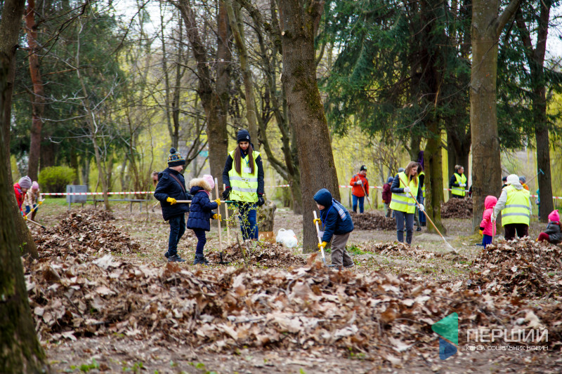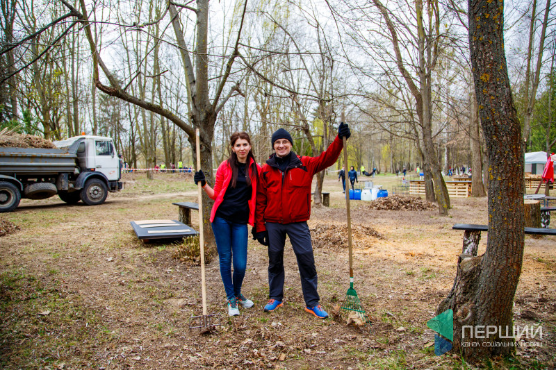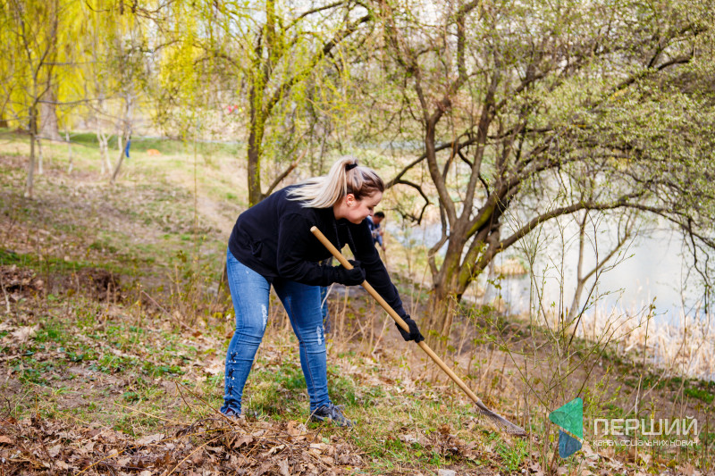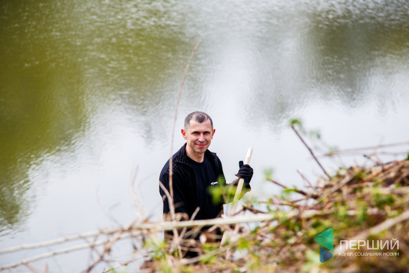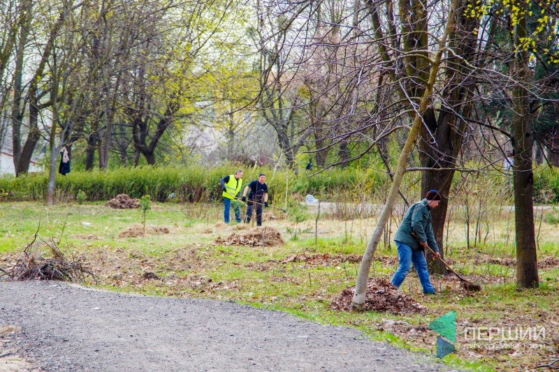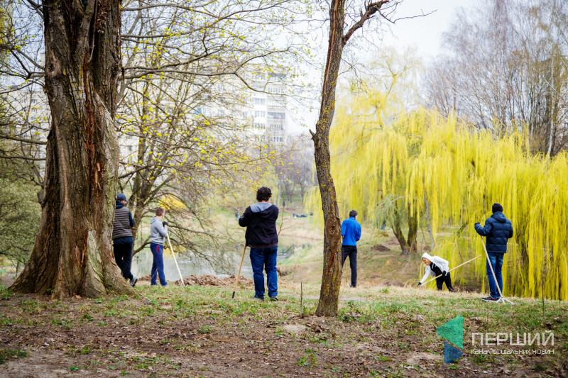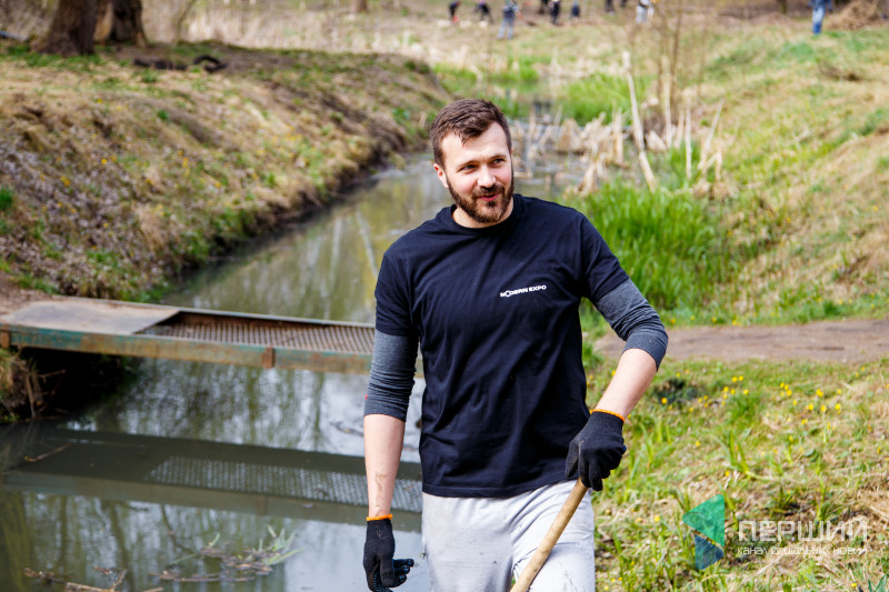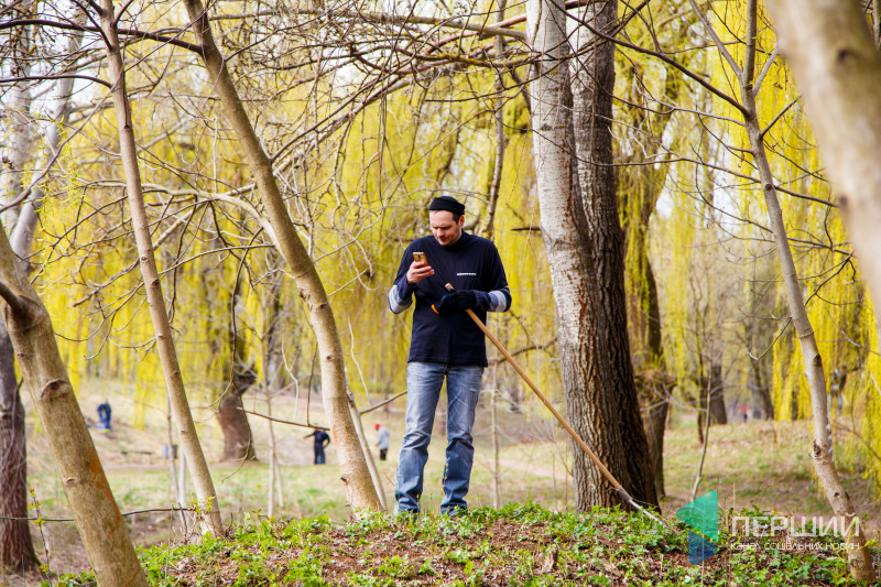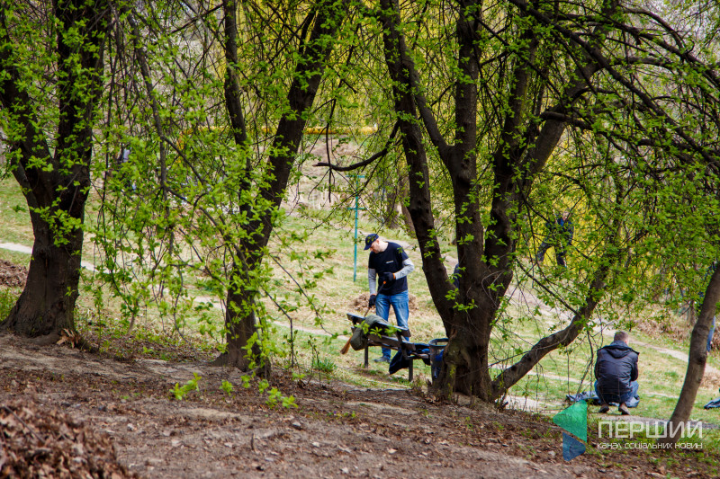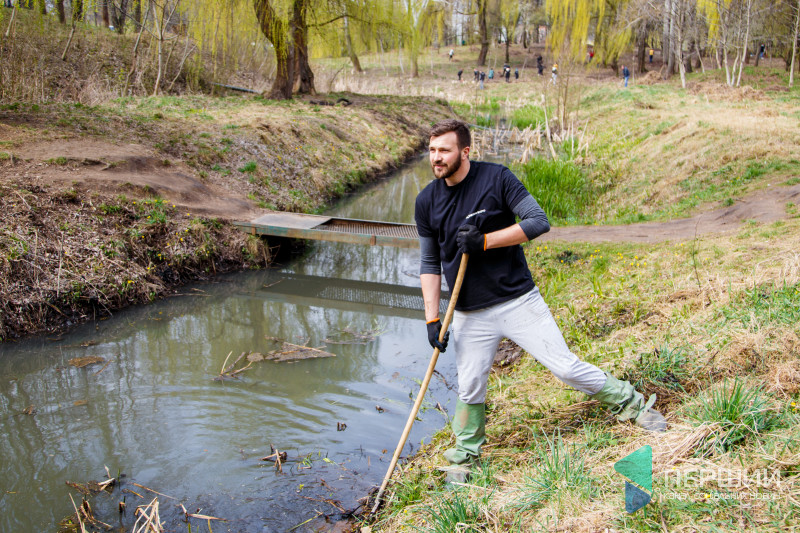 До парку, що займає 18 гектарів у густозаселеному районі міста, відрядили аж 26 бригад. Схоже, організації процесу тут приділили немало часу і сил. Місце прибирання поділили на зони, людей – на команди, усім вручили інструменти, рукавиці, а декому – навіть армійські бахіли. Такі зокрема знадобились тим, хто обрав собі найтяжче місце роботи – розчищення русла річки Сапалаївки. До такої акції долучились аж дві бригади модернівців.