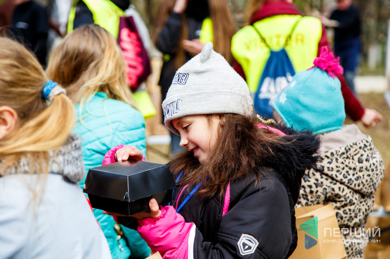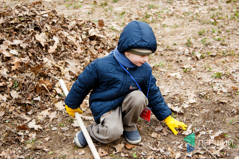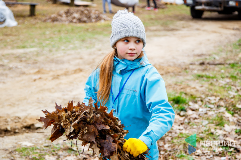 Їй, як і іншим студенткам-пенсіонеркам, доручили разом із волонтерами відповідати за дозвілля дітей на толоці. А їх тут немало – 150 віком від 5 до 15 років. Дітям працівників компанії не тільки влаштували ігри та конкурси, а й дали роботу. Прибирання невеличкої ділянки парку довірили саме малюкам, які завзято гребли листя спеціальними маленькими грабельками.