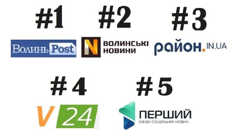 Отож, згідно з минулотижневими даними, найпопулярнішими інтернет-виданнями на Волині є ВолиньPost, ІА «Волинські новини», Район.in.ua, Волинь24, та Перший канал соціальних новин.