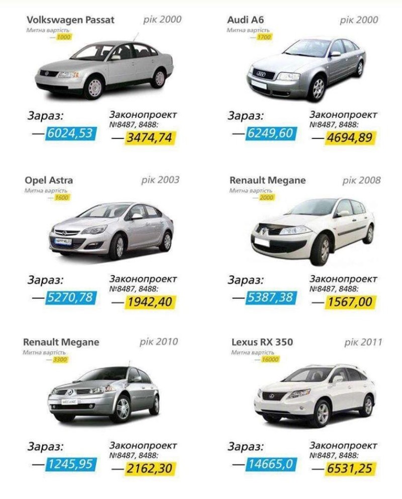Мова йде про законопроекти № 8487 «Про внесення змін до Податкового кодексу України щодо оподаткування податком легкових транспортних засобів» та № 8488 «Про внесення змін до Митного кодексу України та деяких законодавчих актів України щодо ввезення транспортних засобів на митну територію України», які підтримали депутати Верховної Ради України 13 липня.