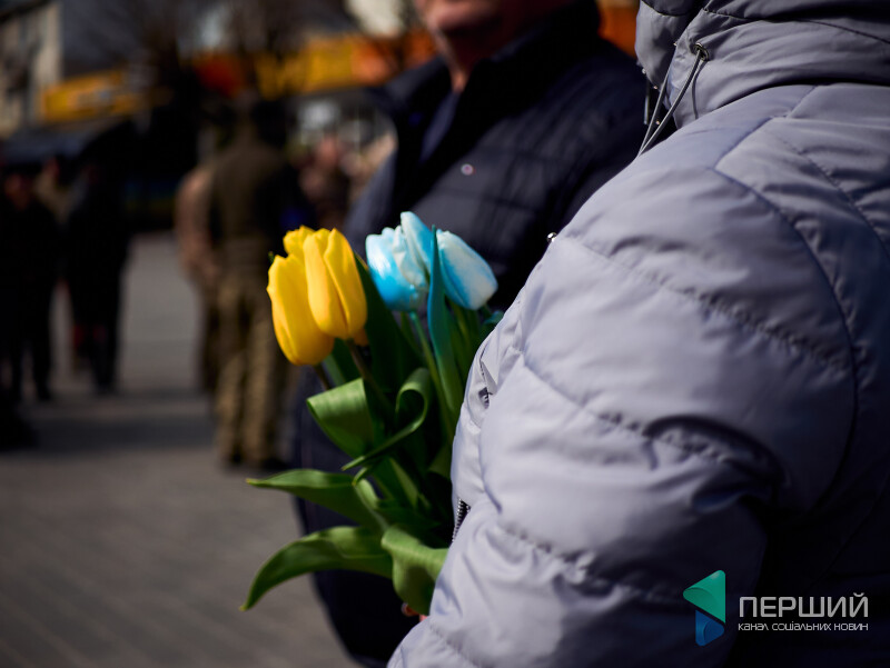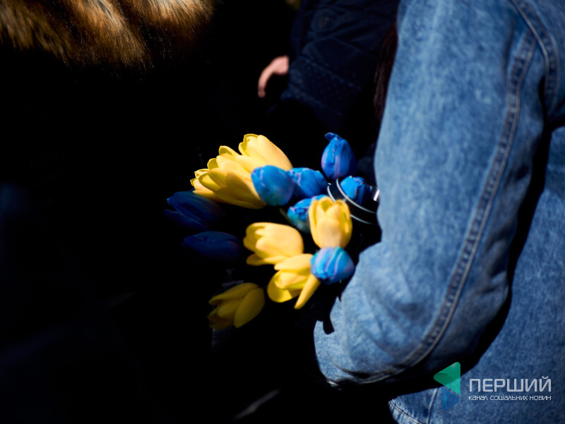 Багато хто ніс у руках не троянди, не гвоздики, а сині і жовті тюльпани із чорними стрічками. Тепер такі є.
