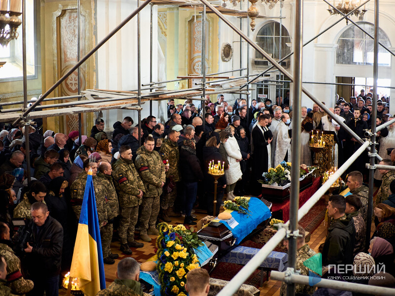 Молимося не лише за мир, а й щоб цей храм був наповнений радісними подіями. Я складаю щиру подяку родинам, тим, хто стоїть біля цих трун: хто є, а хто з поважної причини відсутній. Я дякую вам за цих захисників, які поклали найцінніше, що в них є, за нас, за нашу землі, за Україну. Хай Господь дасть їм велику винагороду за жертовність. А нас надихне і підтримає у цій боротьбі».