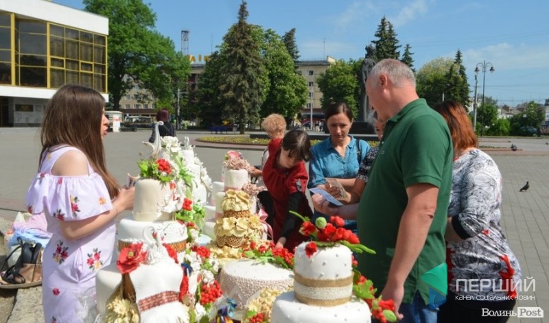 Окрім ого, на Театральному майдані презентують красиві короваї, а також встановили скриньки для збору благодійної допомоги - цьогоріч заучені кошти направлять на будівництво храму у місті-побратимі Луцька Волновасі.