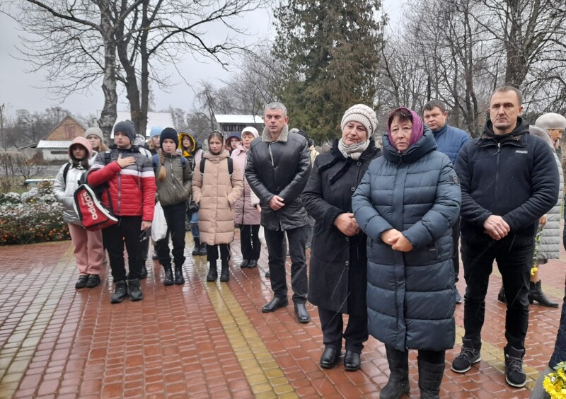 Староста села Галина Кучер вручила мамі Героя ікону. А настоятель храму Різдва Пресвятої Богородиці Юрій Рудь освятив пам’ятний знак, до якого усі присутні піднесли квіти.
