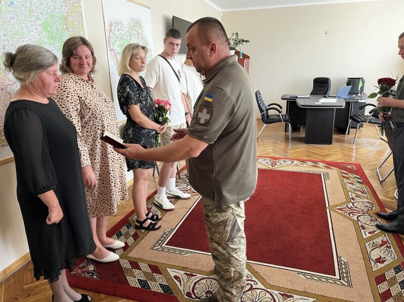 Міський голова Любомля Роман Ющук та начальник першого відділу Ковельського РТЦК та СП Василь Дмитрук вручили посмертні державні нагороди, як символ неоціненного внеску Героїв у боротьбу з ворогом, сім’ям полеглих захисників.
