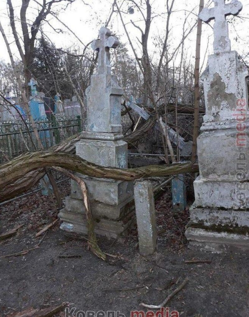 Як інформує Ковель Медіа, стихія повалила кілька дерев, причому деякі – з корінням, які при падінні розбили пам’ятники. Це сталося в районі Михайлівської церкви.