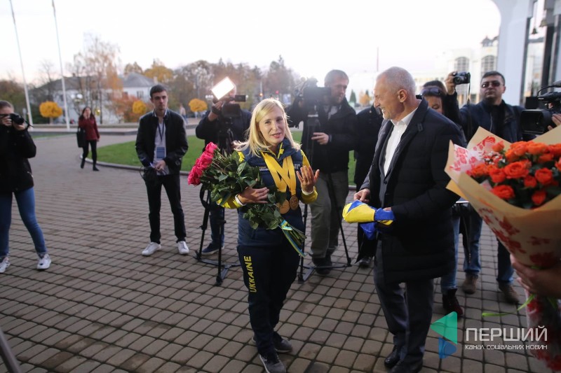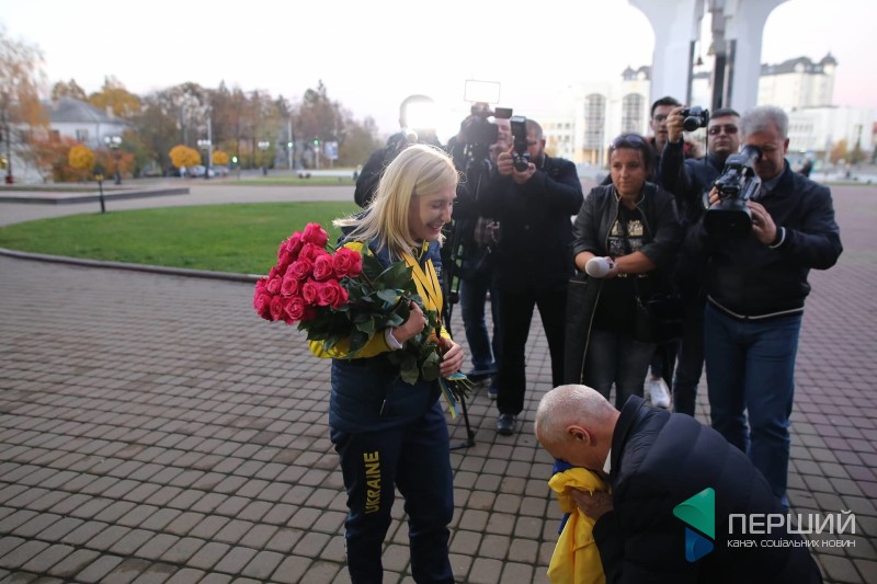 Лучани зібралися під стінами Волинської обласної адміністрації, аби зустріти володарку «золота» на «Іграх нескорених» Майю Москвич.