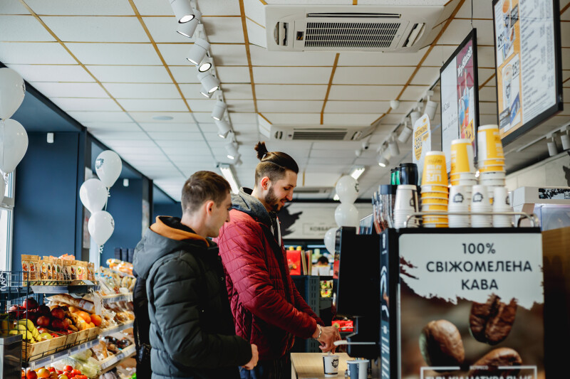 У новому маркеті усе – за стандартами «Сім23». Можна придбати необхідні продукти, а також скуштувати або взяти з собою фірмові хот-доги, випічку, десерти, салати та напої.