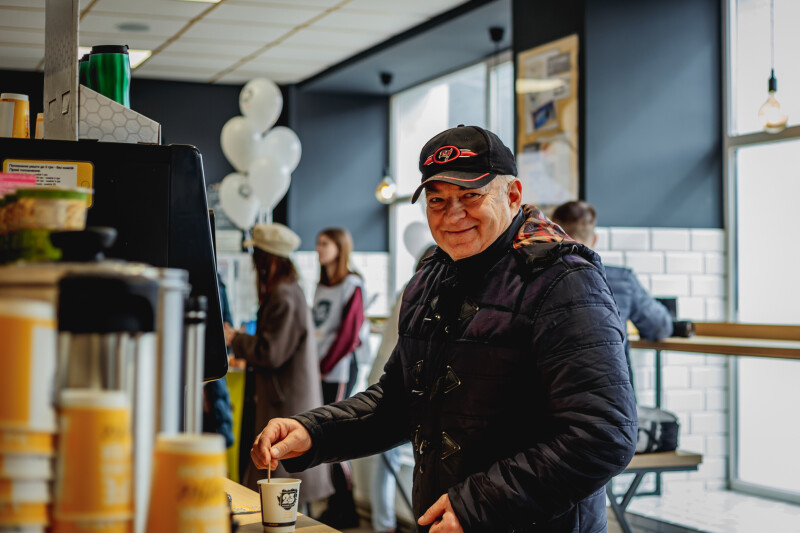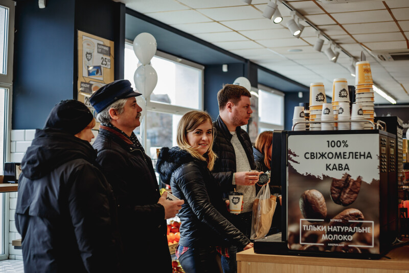 Також протягом тижня після відкриття магазину на Соборності (до 19 березня) діють спеціальні пропозиції: 1+1 (дві кави за ціною однієї) та знижка 25% на всі фірмові хот-доги.