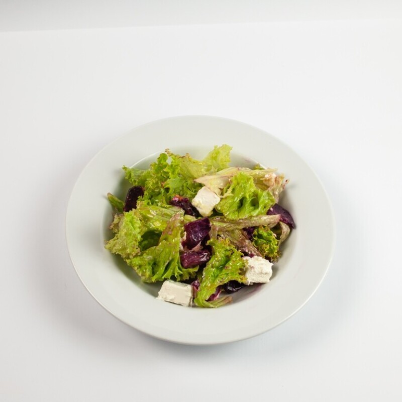 Для гурманів смакуватиме Доволі оригінальне поєднання печеного бурячку, фети та грецьких горіхів. Заправляється авторським соусом з часникової олії та лимонного соку.