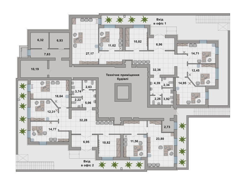 Завдяки великій площі приміщення можна використовувати не тільки для офісу.