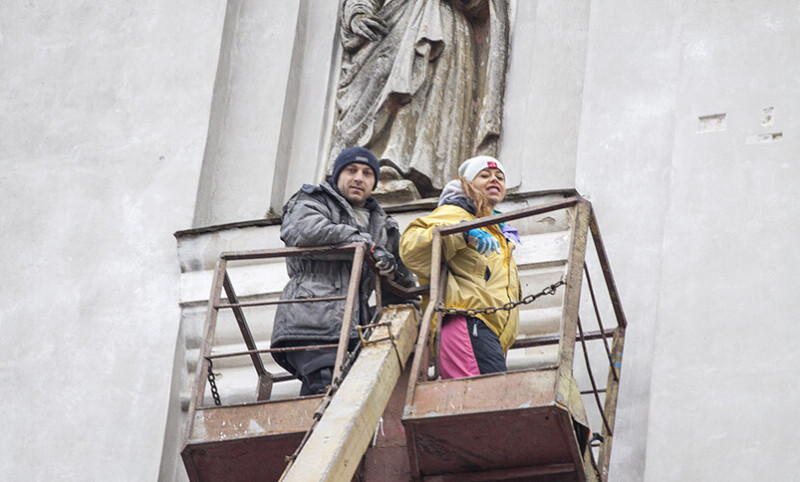 «Ми вивчаємо нашарування в інтер’єрі та екстер’єрі храму, як упродовж існування храму змінювалася його поліхромія. Окрім того, що ми робимо стратиграфічні проби для дослідження кольорів, ми ще й беремо проби для детальнішого лабораторного аналізу. Так визначається датування, склад фарби, а також склад самого матеріалу – чи має він якісь солі, яка його вологість», – розповіла реставраторка Юлія Бужак.