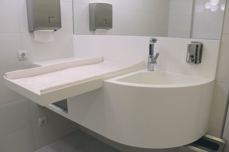 Кімната обладнана повивальним столиком з матрацом, кріслом для годування, мікрохвильовою піччю для нагрівання дитячого харчування, раковиною і необхідними засобами гігієни: паперовими рушниками, диспенсерним милом.