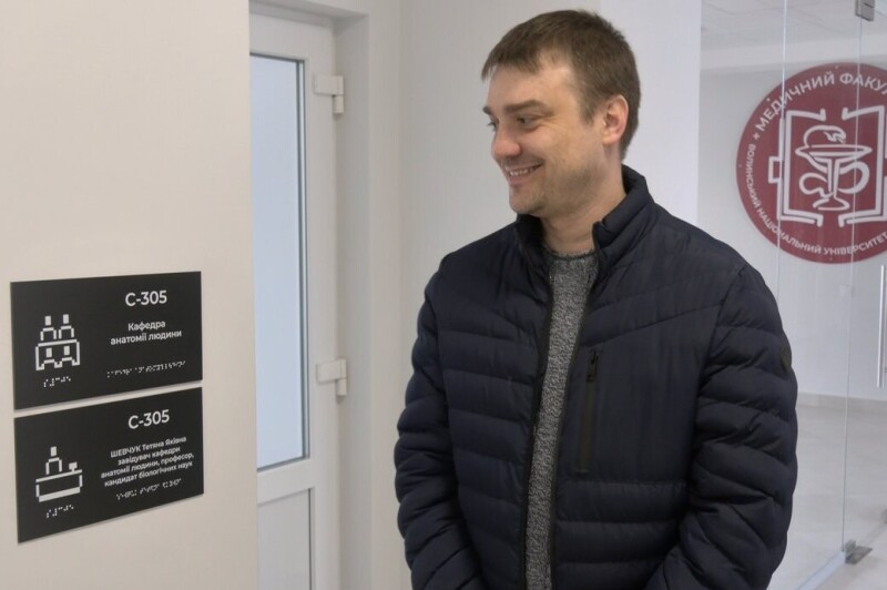 На медичному факультеті ВНУ імені Лесі Українки для студентів із порушеннями хору встановили 80 табличок із піктограмами та шрифтом Брайля.