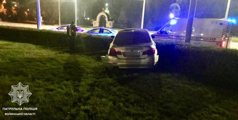 У Луцьку в ніч на середу, 18 жовтня, автомобіль марки БМВ виїхав на кільце та перекинувся.