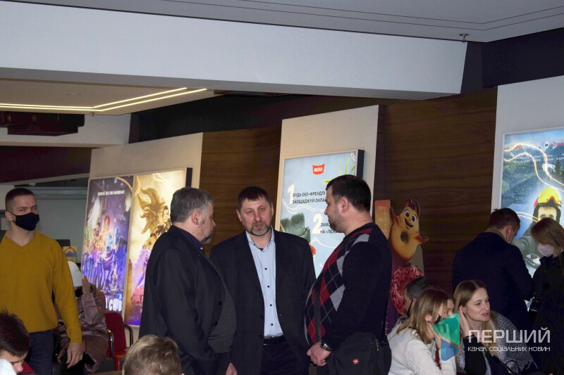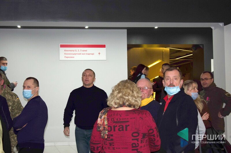 У Луцьку в ТРЦ «Промінь» 30 січня відбувся допрем’єрний показ фільму про кіборгів «Трохи нижче неба». Людей прийшло чимало, попри рясну заметіль. Тут — заступник голови обласної ради Григорій Пустовіт, заступник голови Волинської ОДА Анатолій Костик, військовий капелан, протоієрей Михайло Бучак, радник патронатної служби Волинської ОДА Ігор Возняк і з сотня військових, волонтерів, активістів.