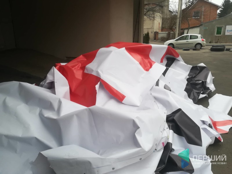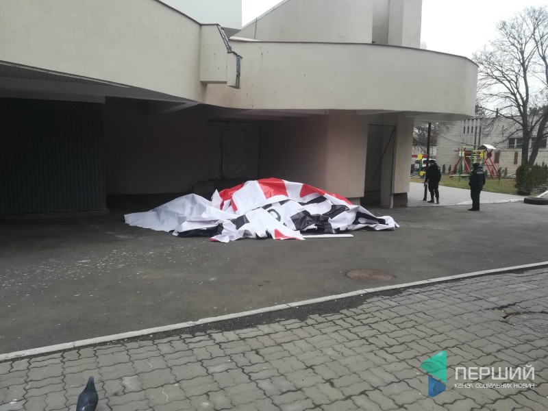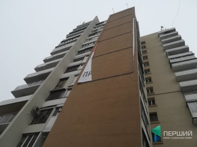 Біля 16-поверхівки лежить купа зірваного зі стіни банера: увечері його повісили невідомі. На банері йшлося: «Ти став президентом на крові хлопців 51 ОМБР. Щоб сховати свої злочини, твої генерали її знищили. Волинь такого не пробачає»
