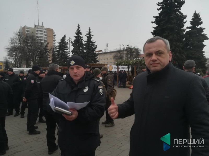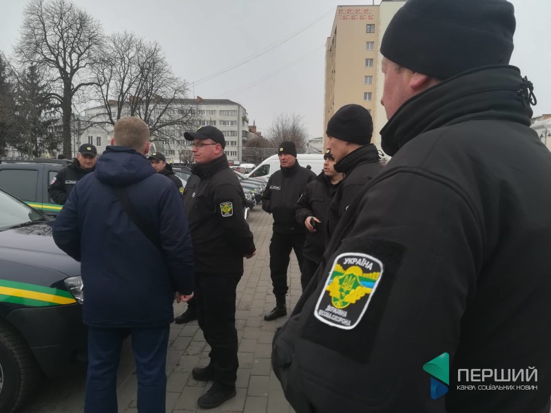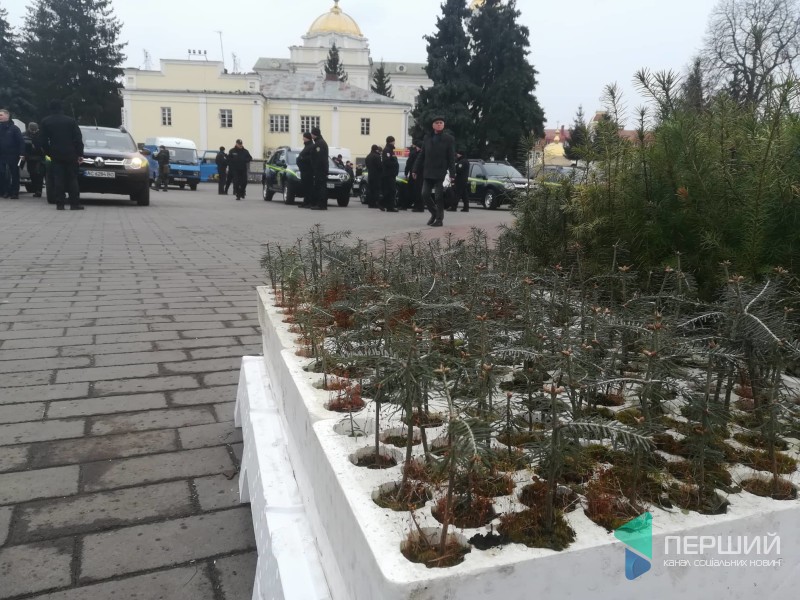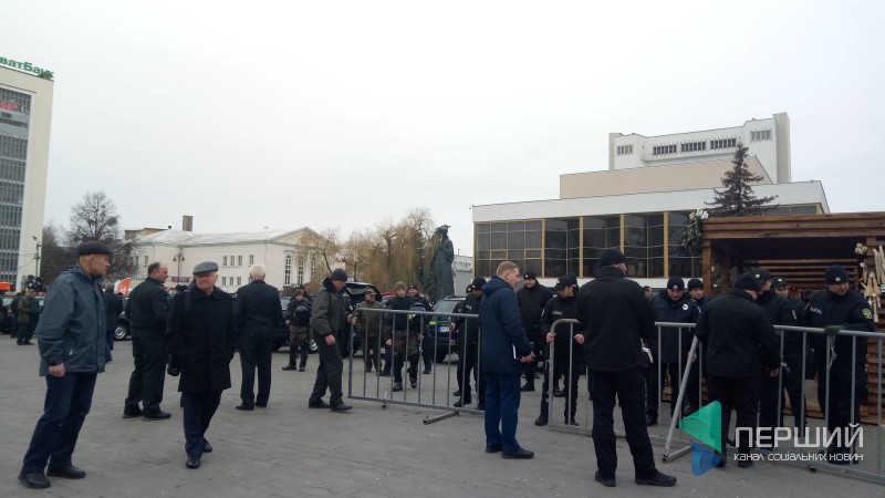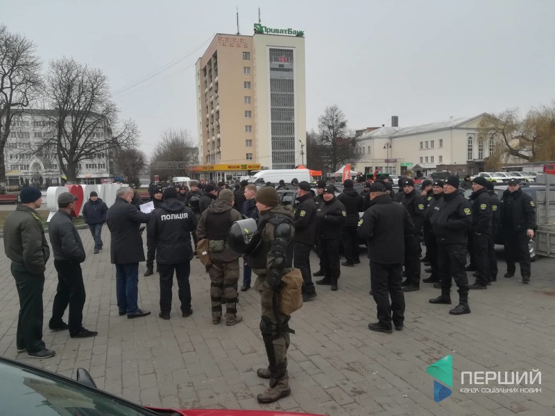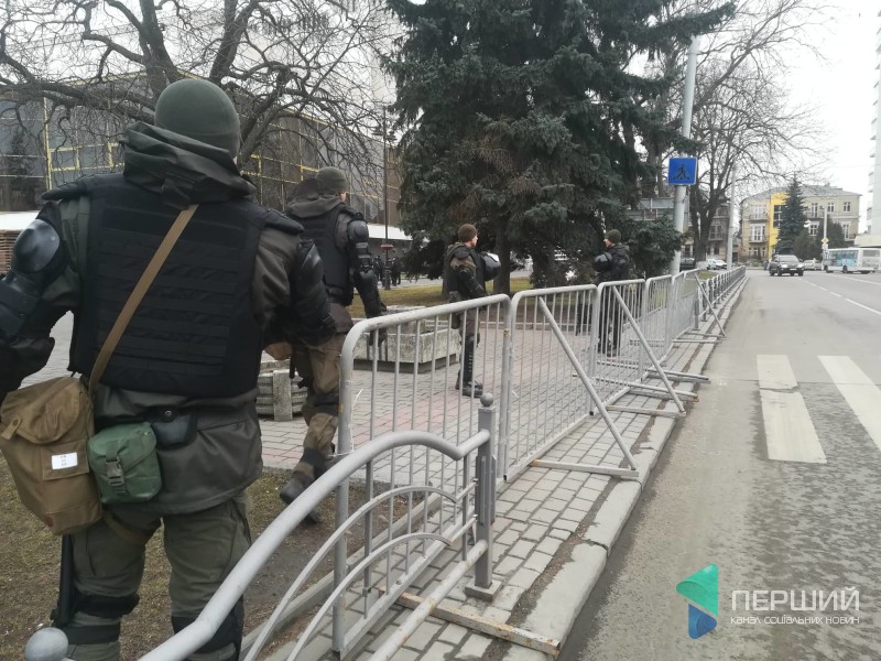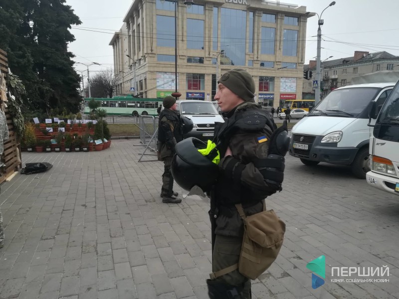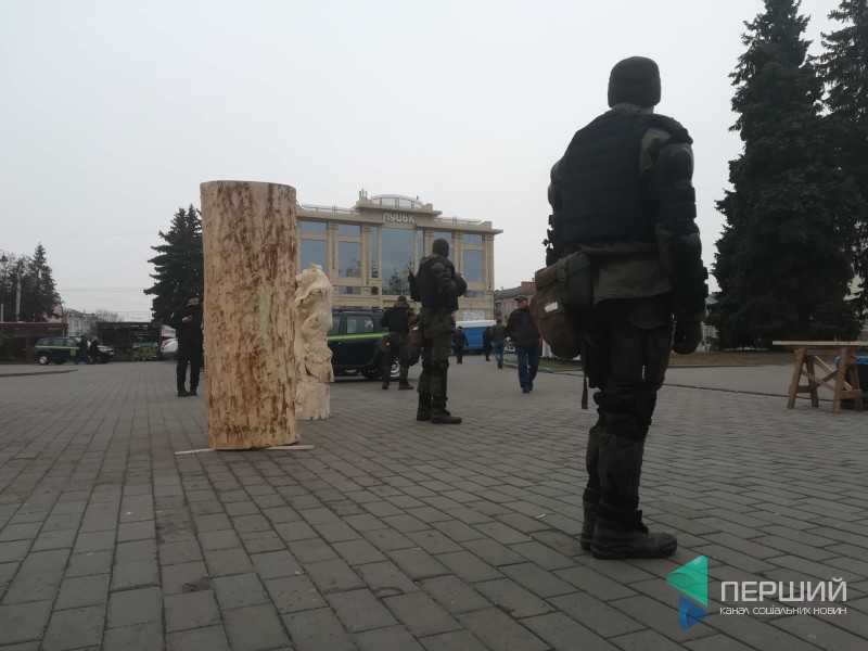 В центрі Луцька – більше сотні представників поліції, Нацгвардії і лісової охорони. Вони охороняють периметр частини площі, що перед драмтеатром. Також перекрили в’їзд на площу з боку вулиці Градний  Увіз. Заїзди з вулиці Крилова і вулиці Кривий Вал не перекриті.