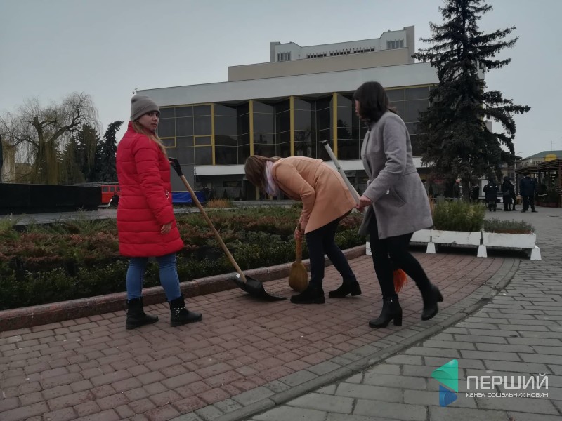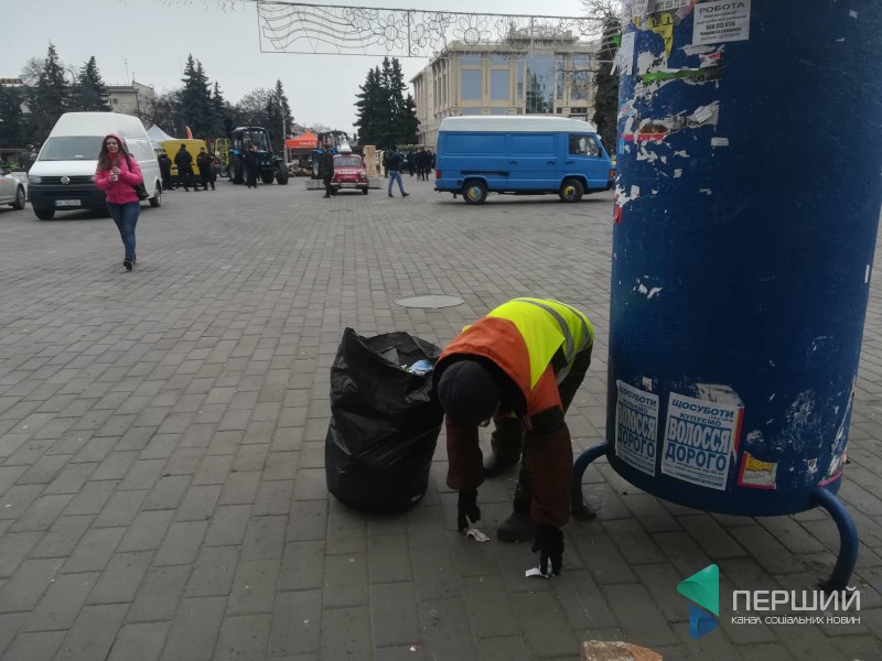 Близько 9:00 почали ставити обмежувачі і уздовж Театрального майдану, «відсікаючи» частину площі.