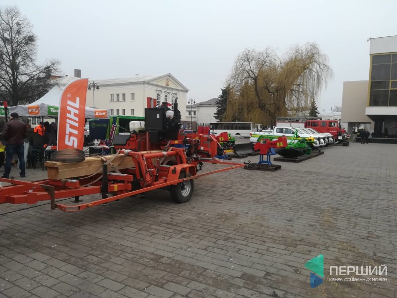 На площі біля Театрального майдану розклали лісову техніку, стоять автомобілі лісової охорони. Також розмістили павільйони окремих лісництв України, де вони презентують свою продукцію – саджанці, консервацію.