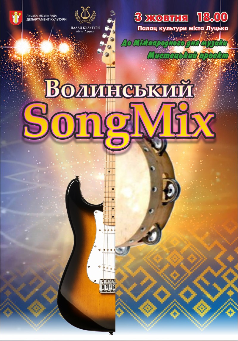 3 жовтня 2018 року у Палаці культури міста Луцька вже вдруге відбудеться мистецький проект «Волинський SongMix», з нагоди Міжнародного дня музики.