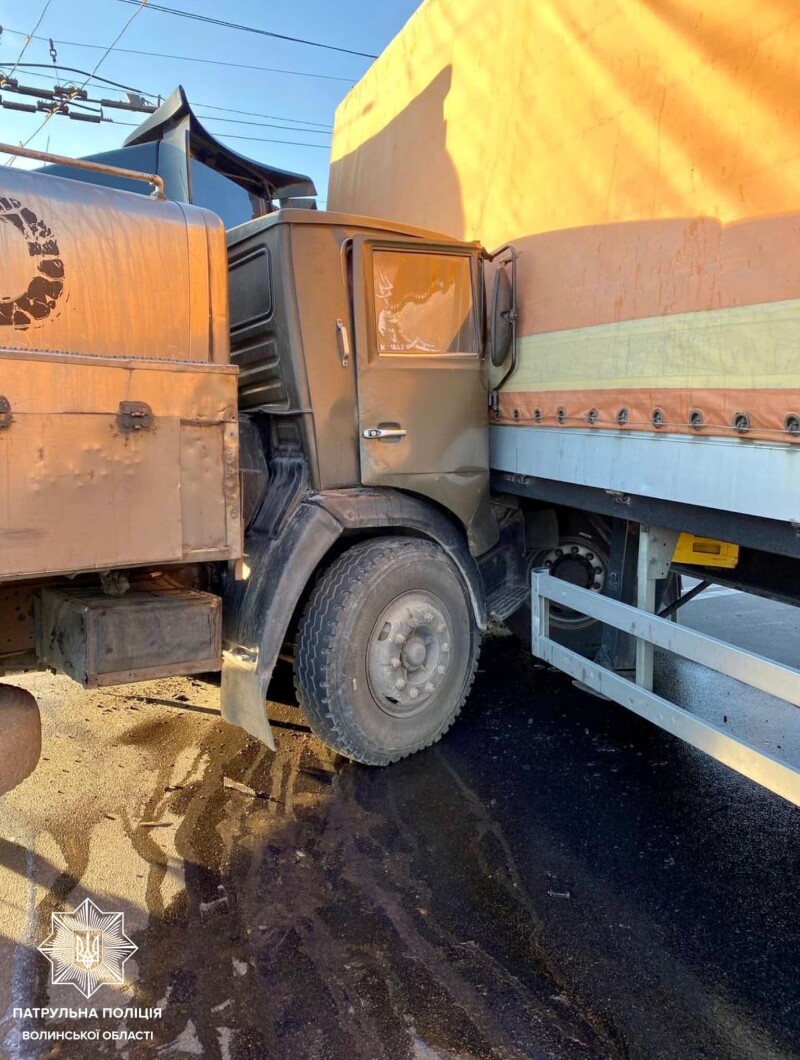 У Луцьку вчора, 10 жовтня, близько 17-ї години, на перехресті вулиць Львівської та Європейської трапилася дорожньо-транспортна пригода за участі двох вантажівок.