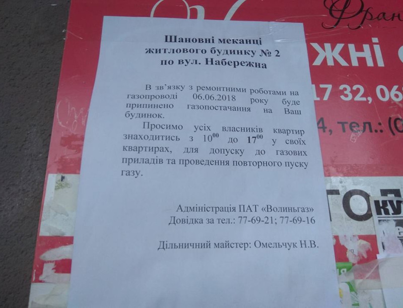 Місцеві кажуть, газ обіцяли вимкнути з 10-ї по 17-ту годину 6 червня, однак станом на 20-ту годину газопостачання не відновили, інформує Волинь24.
