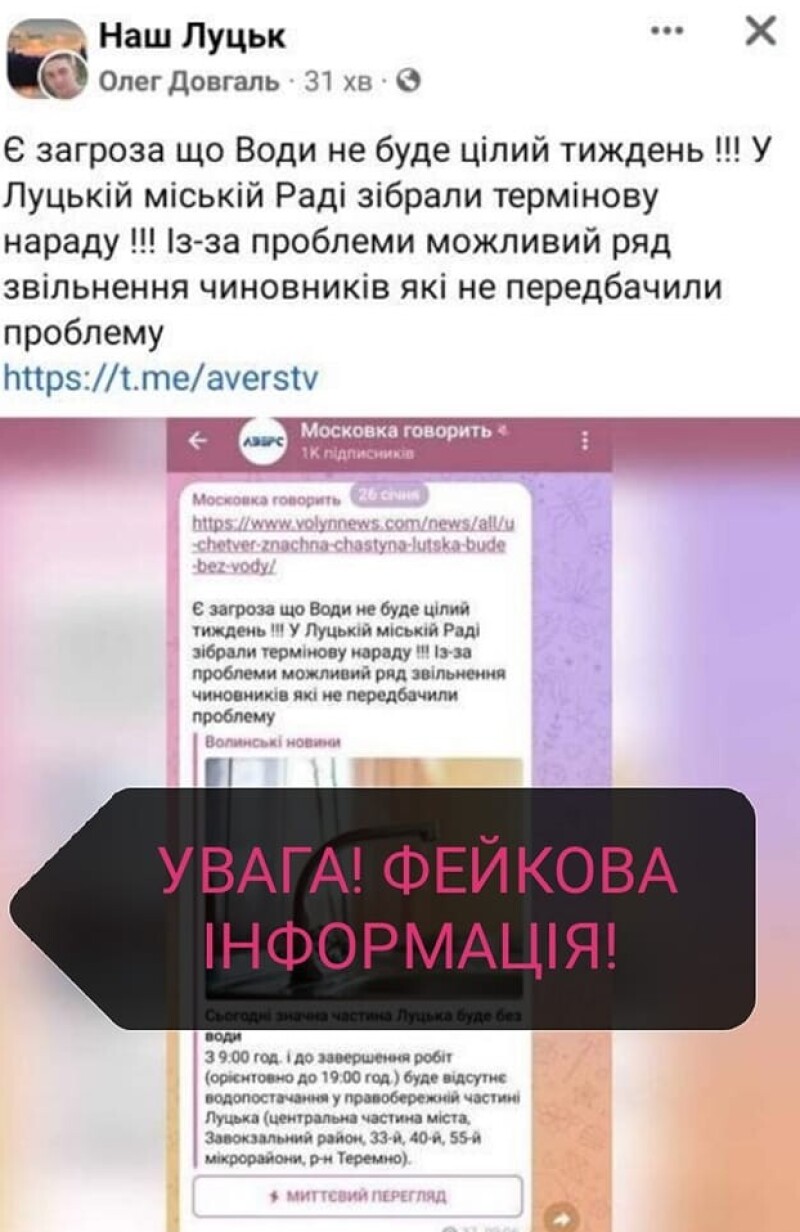 Насправді аварійно-відновлювальні роботи відбуваються у плановому порядку і сьогодні будуть завершені, а водопостачання – відновлене. У випадку форс-мажорних ситуацій підприємство Луцькводонана надасть додаткові офіційну інформацію.