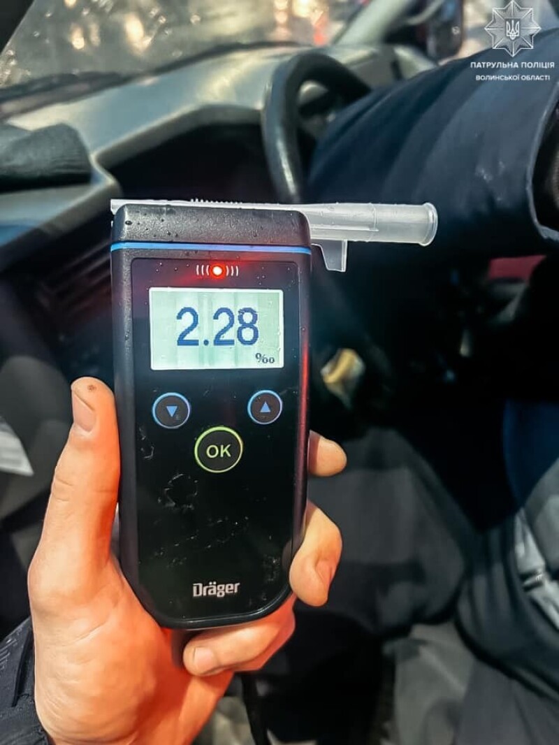 Під час спілкування із водієм інспектори й справді виявили у нього ознаки алкогольного сп’яніння. Це підтвердив і прилад Драгер, який показав результат 2,28 проміле. Також керманич не мав з собою посвідчення водія та реєстраційного документа на автомобіль.