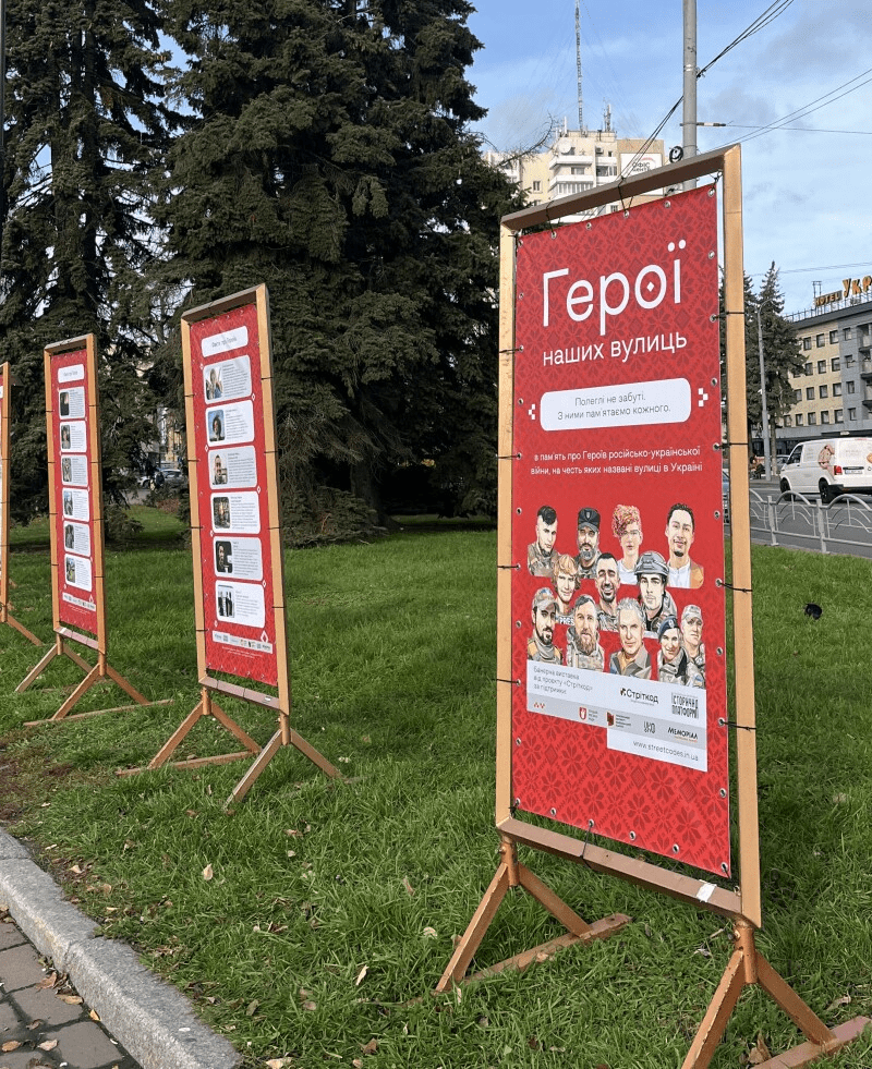 Ця виставка реалізується ГО «Історична платформа» за підтримки Українського культурного фонду (УКФ) у містах Київ, Луцьк, Вінниця та присвячений Героям російсько-української війни, на честь яких названі чи перейменовані вулиці в українських містах.