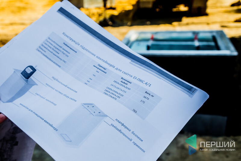 Для того, щоб встановити підземний смітник, на глибину 2,6 метра закопують залізобетонний резервуар. Він не дає стокам потрапити у ґрунт. Далі встановлюється платформа безпеки, яка зачиняється, коли контейнер виймають для очистки. Це робиться в цілях безпеки – щоб ніхто не впав всередину. Далі – безпосередньо контейнер об’ємом 5 метрів кубічних (для порівняння – звичайний вуличний бак має об’єм 1,1 метра кубічного). На поверхні встановлюється сміттєприймальна колонка. Вона висотою близько метра і виглядає, як невеликий вуличний смітник.