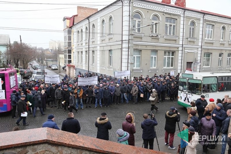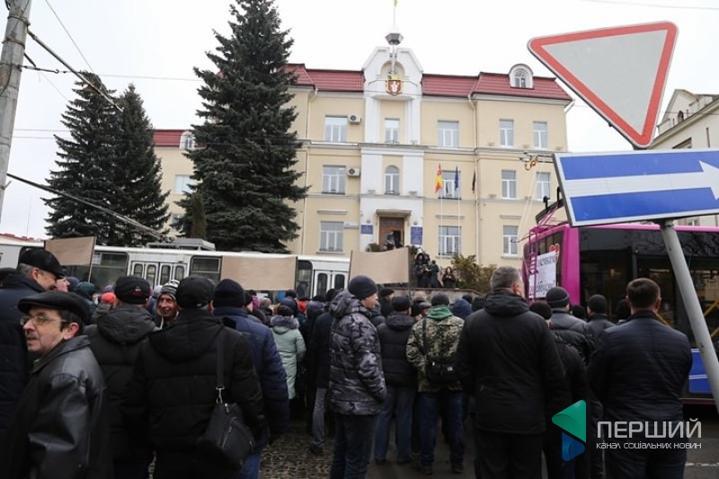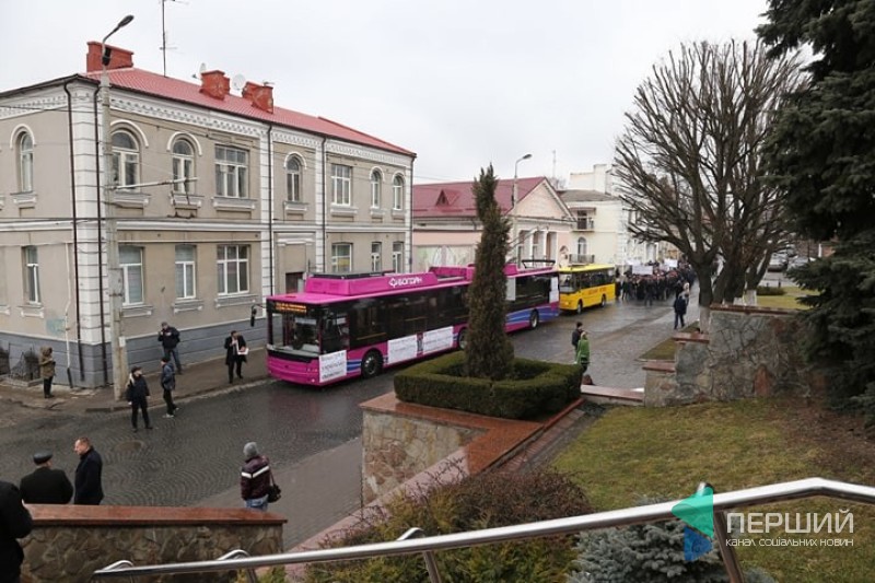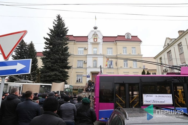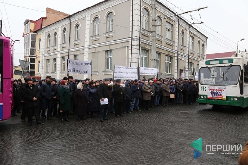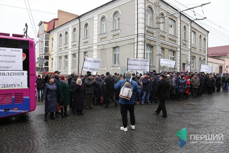 Працівники Луцького автоскладального заводу №1 вийшли на мітинг проти рішення міської ради щодо того, щоб за державні кошти купити вживані тролейбуси зі Швейцарії.