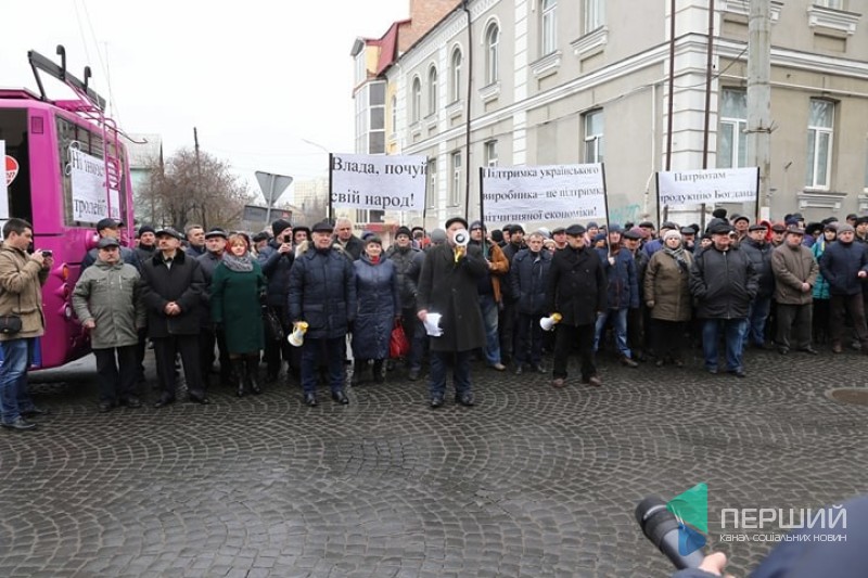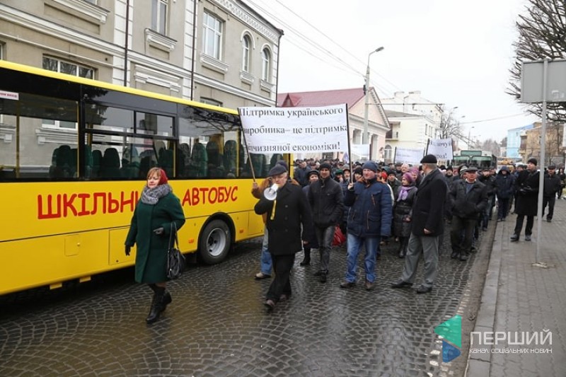 «Ми бастуємо, аби купували нашу продукцію, а не імпортну, яку купують і «бабки» між собою ділять. Інші міста України закупляють, наприклад, з Кременчука, а Луцьк не може», – обурився один із мітингувальників.