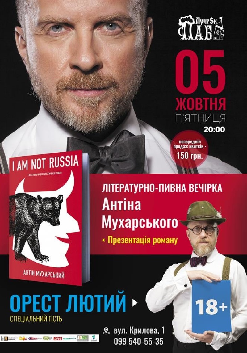У Луцьку відбудеться літературно-пивна вечірка-концерт, присвячена презентації чоловічої книги Антіна Мухарського «I AM NOT RUSSIA».