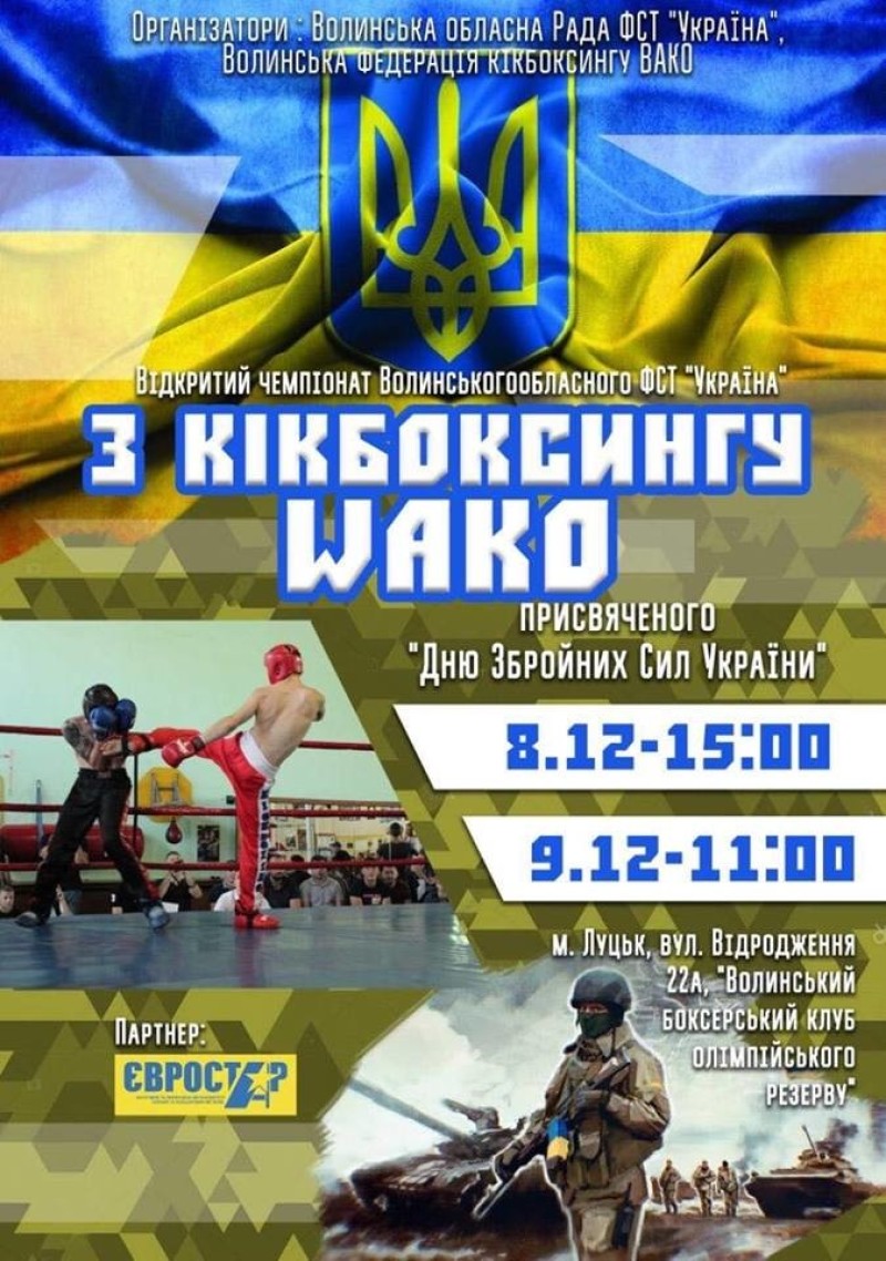 У Луцьку відбудеться відкритий чемпіонат з кікбоксингу Wako, присвячений Дню збройних сил України.