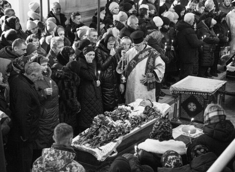 “Свята церква оспівує тих, кого ми називаємо Героями. На превеликий жаль, Героями стають не тільки ті, хто живими повернулися в свої домівки, а й ті, які віддали своє життя за Україну, за рідну землю, за свою сім’ю. Дорога скорботна родино! Великий жаль, плач і сльози сьогодні не тільки серед вас, а й у цілої нашої громади. Погляньте навколо себе – скільки людей прийшло вас підтримати! Сьогодні кожен із нас стане перед вашими дітьми на коліна, бо вони заслужили цієї шани. І цим самим кожен засвідчить свою повагу і до вас, дорогі батьки та усі члени сімей загиблих Героїв”, – сказав у скорботній промові декан кафедрального собору Святої Трійці протоієрей Микола Нецькар.