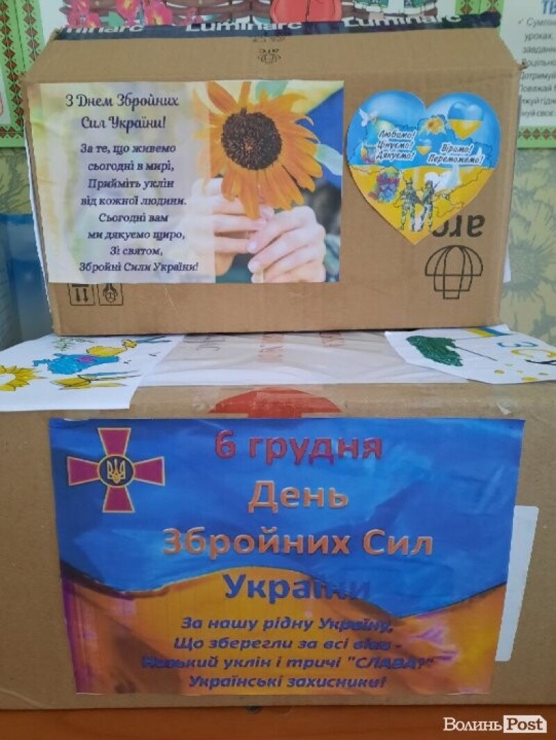 «До школи приїхали волонтери, зокрема Наталія Жовнірук, Дєд Волинь, яким ми передали зібрану допомогу. Частина «торбинок для Перемоги» вже у дорозі на передову», - повідомила ініціаторка благодійної акції.
